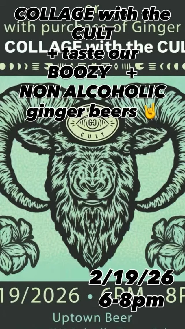 Come COLLAGE with the CULT tomorrow @uptownbeerco 6-8pm. Taste all of our delicious ginger beers. Alcoholic and non alcoholic options 🤘
